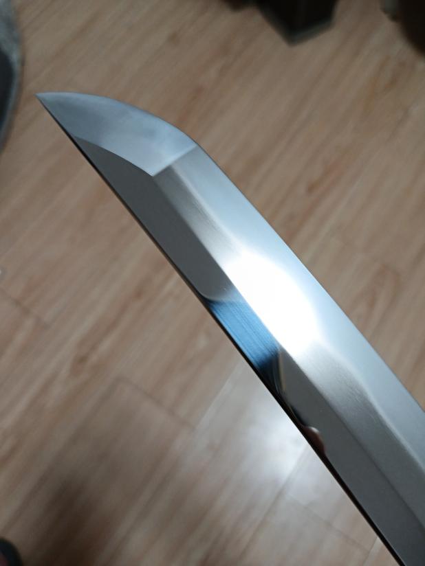 I consider myself a half-hearted samurai sword enthusiast and usually like to collect ones with decent craftsmanship. The first feeling I had when I got this one is that the details are well-handled—for example, there are no impurities left in the gaps of the tsuba (guard), the scabbard fits the blade very well, and it doesn't get stuck when drawing or inserting. The pattern of the crucible steel is not the printed kind; it's natural forging marks. The edge pattern from the Clay Temper process is also very neat, and you can tell it was made with care. The polishing is not ostentatious; it has a warm luster, not the dazzling kind like a mirror. The grip is also good, with a well-found balance point, so it's stable even when swinging with one hand. No problems have been found so far, and if properly maintained later, it should last for a long time.